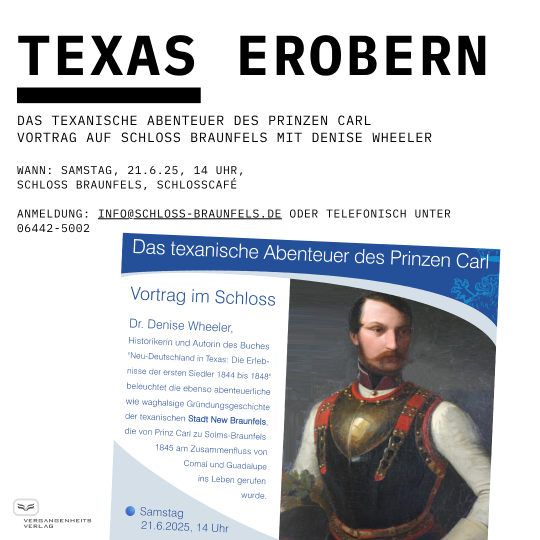 Nutzen Sie die Gelegenheit, mehr über die spannende Geschichte von Prinz Carl und den deutschen Auswanderern nach Texas zu erfahren. Wir freuen uns auf Ihr Kommen!